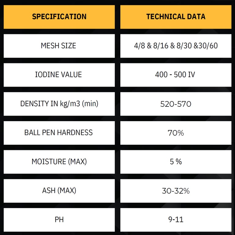We manufacture and export a wide range of coal based activated carbon used in various industries
