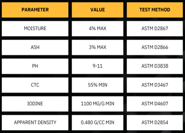 Carbons of convenient sizes with different iodine values are available.